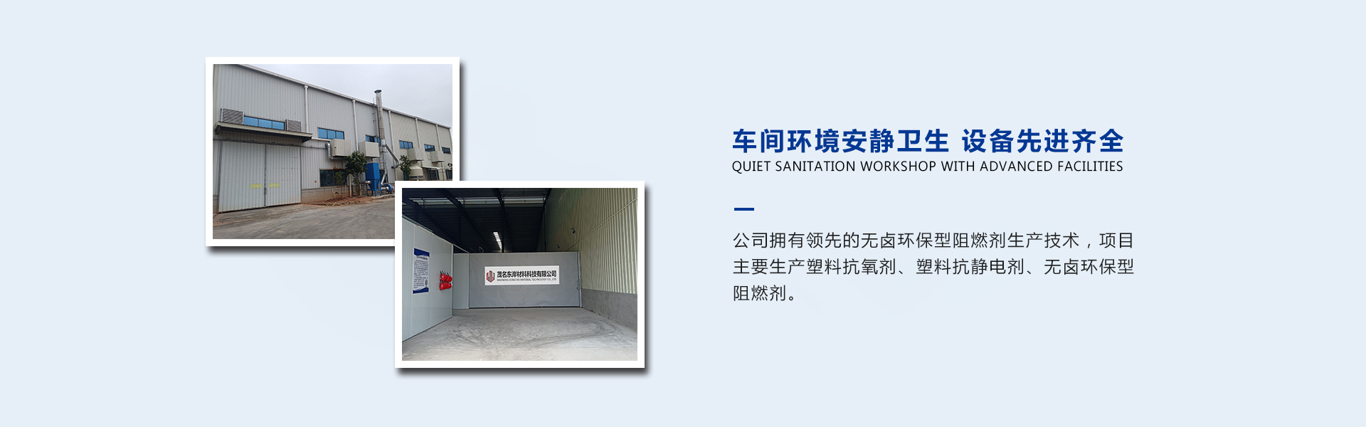 公司擁有先進(jìn)的無鹵環(huán)保型阻燃劑生產(chǎn)技術(shù),項目主要生產(chǎn)塑料抗氧劑、塑料抗靜電劑、無鹵環(huán)保型阻燃劑。